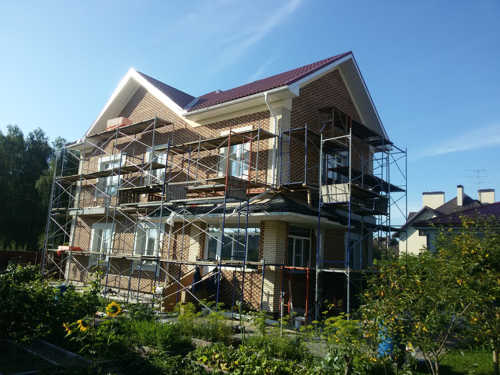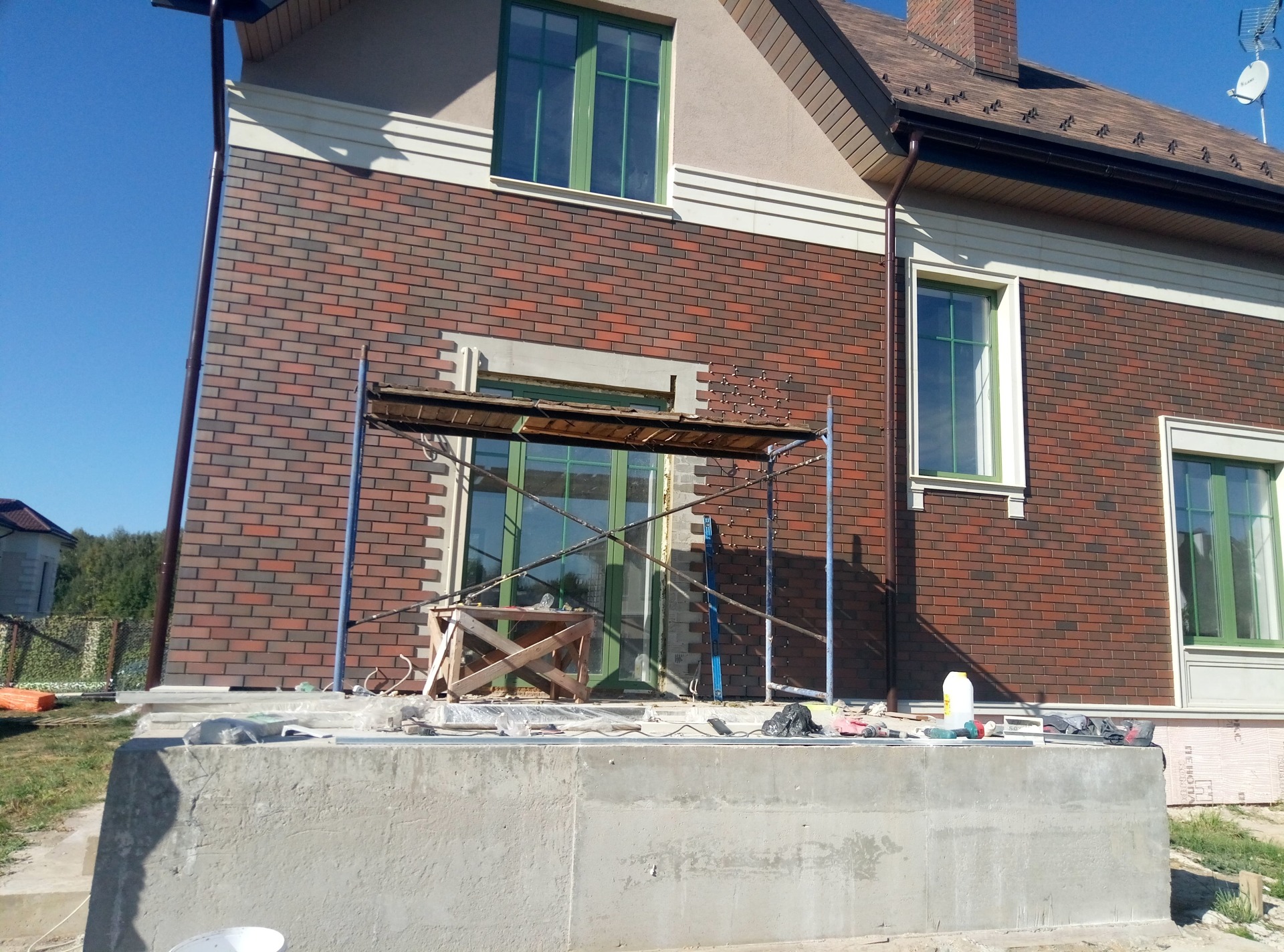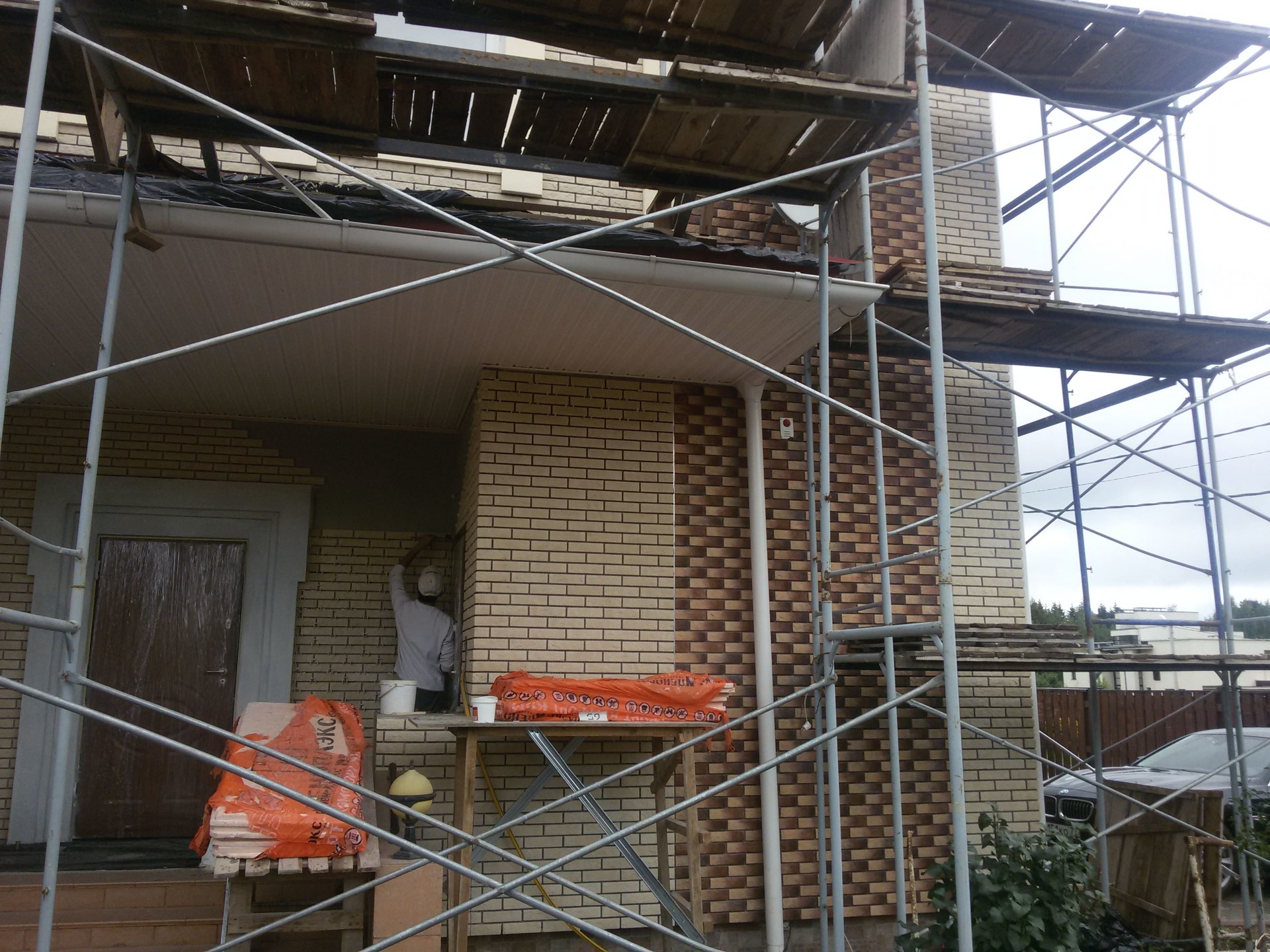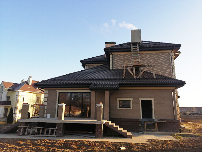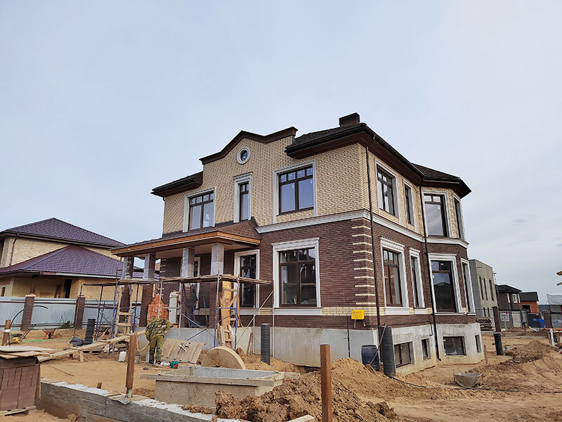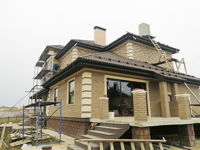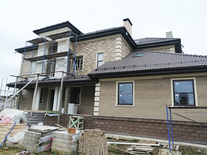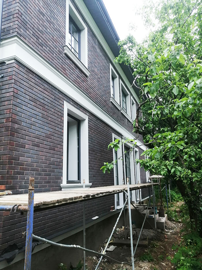 Облицовка фасада клинкерной плиткой.