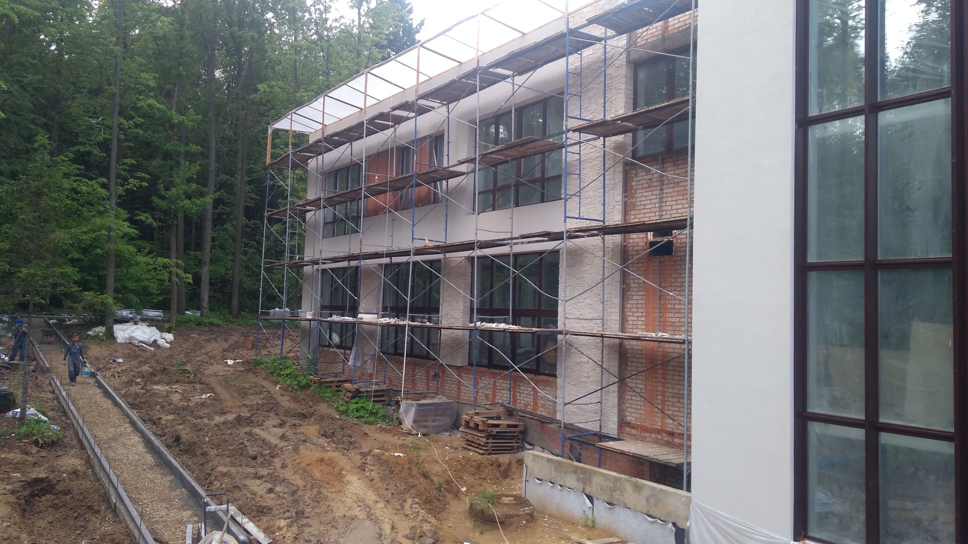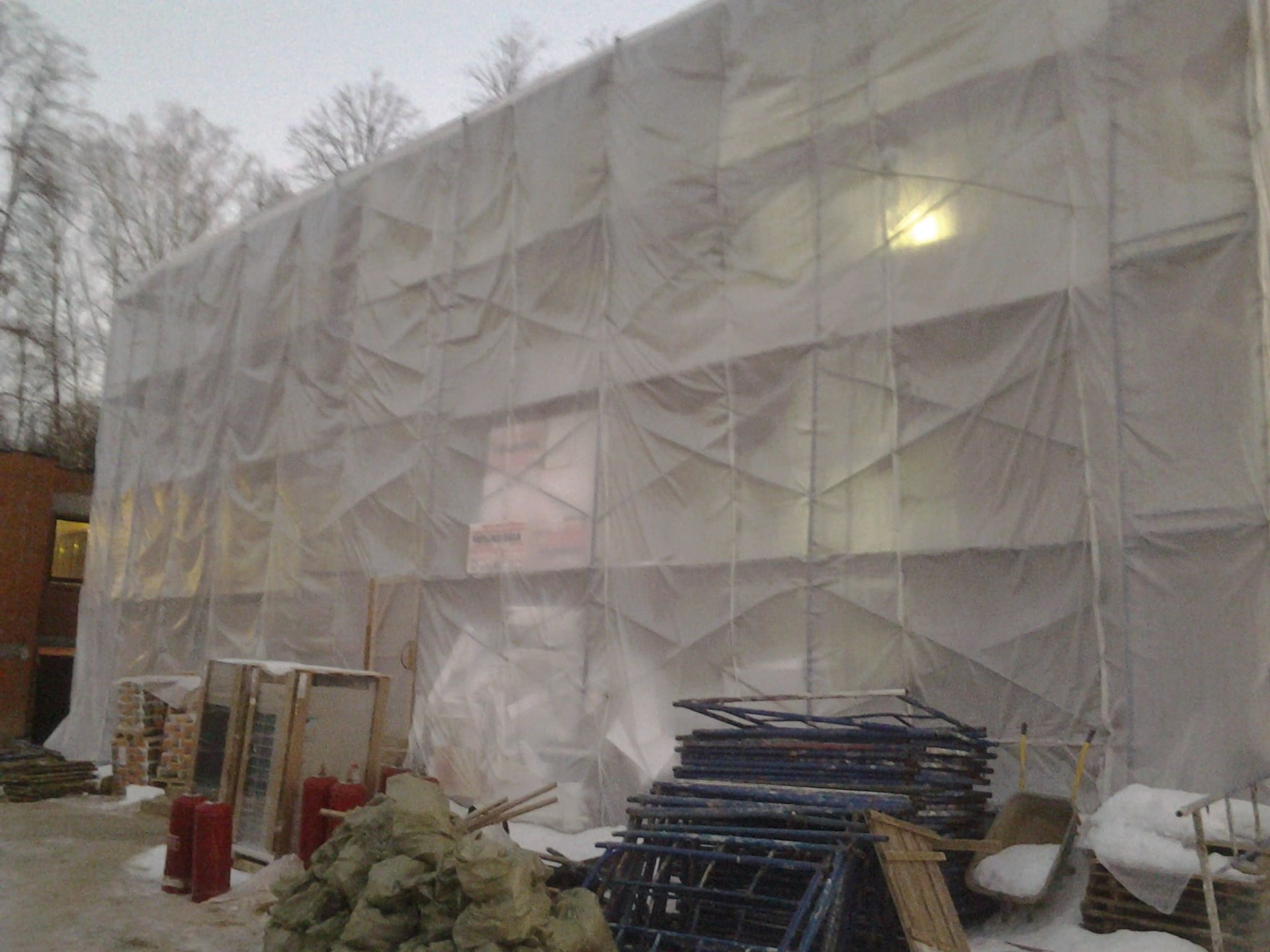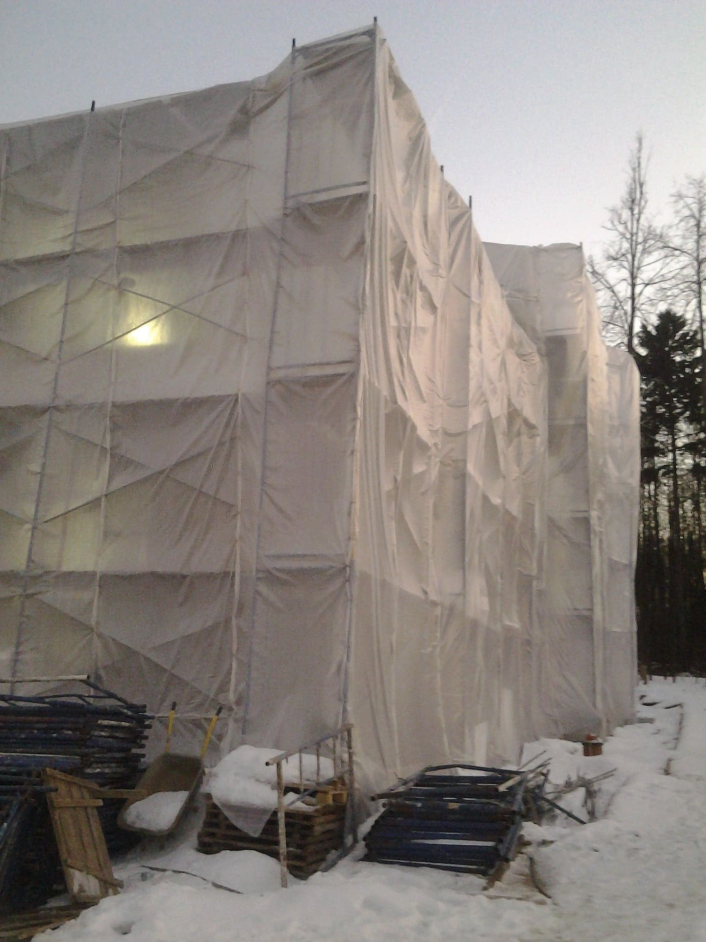 Установка инвентарных лесов.