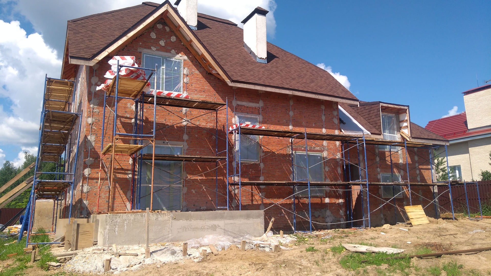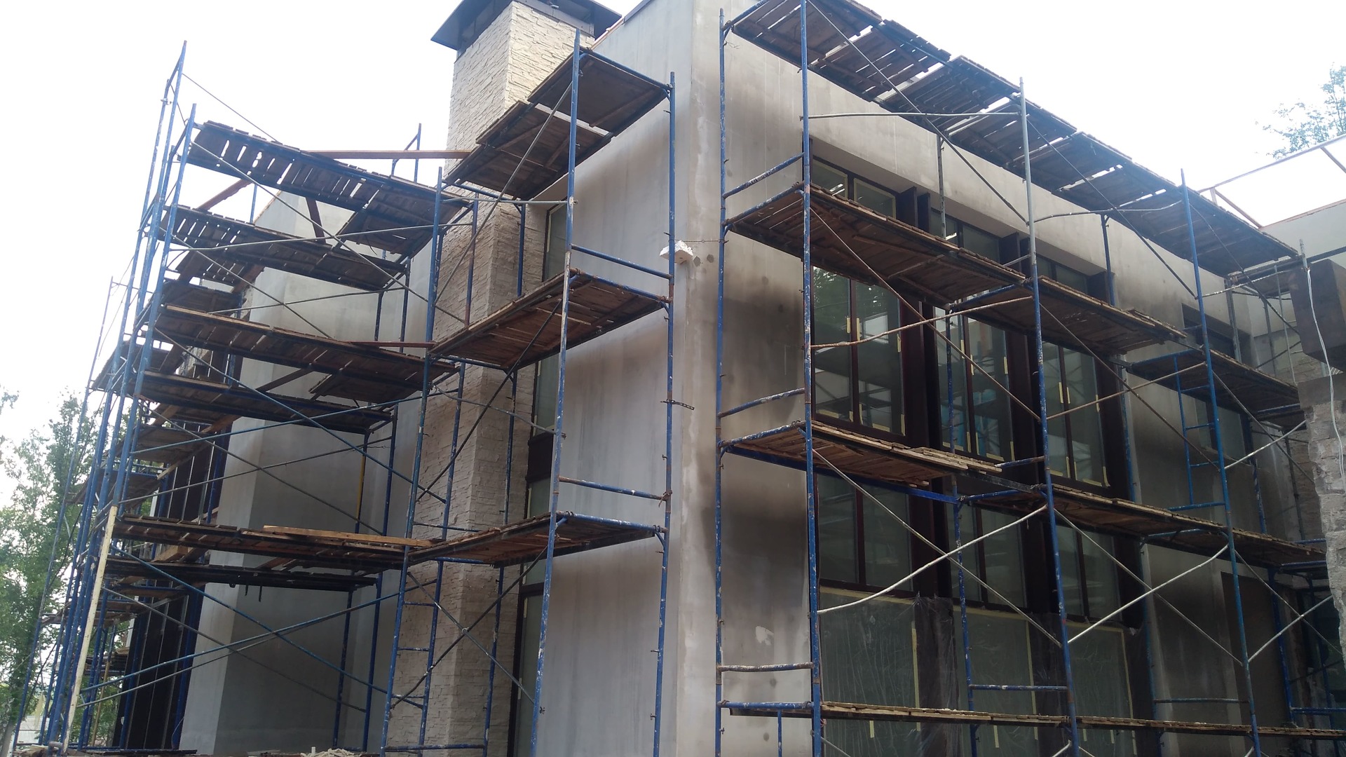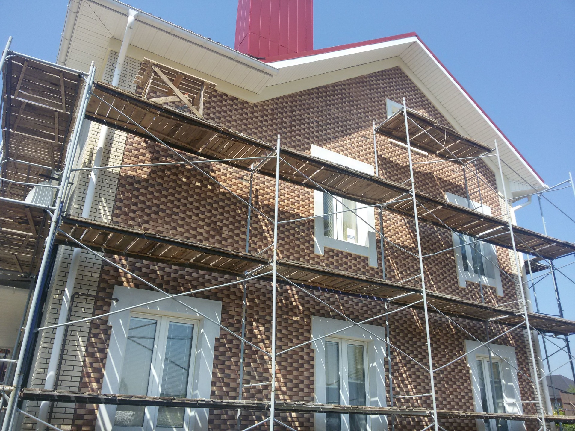 Производство работ выполняется квалифицированными работниками с использованием инвентарных фасадных лесов и профессиональным инструментом.