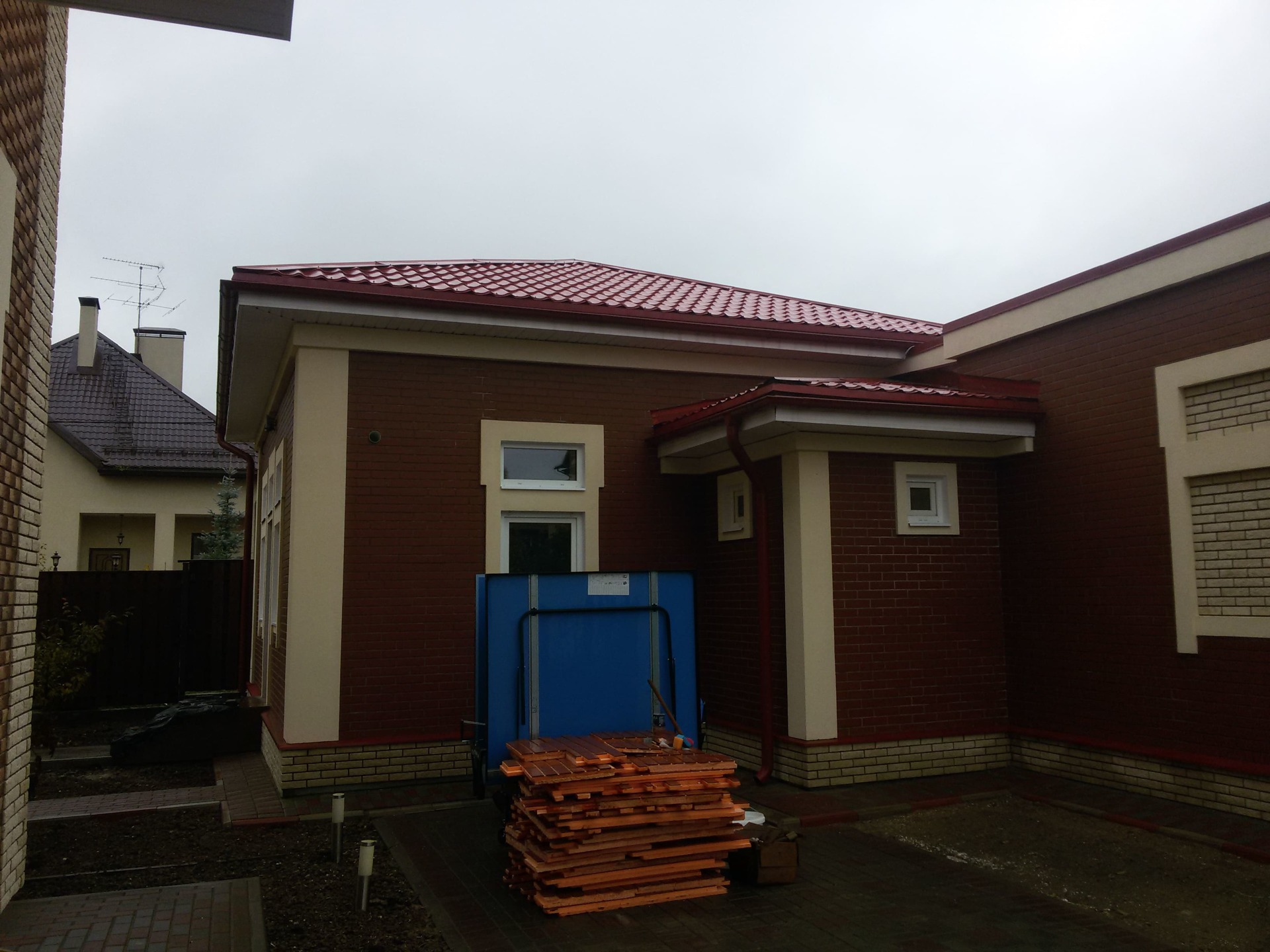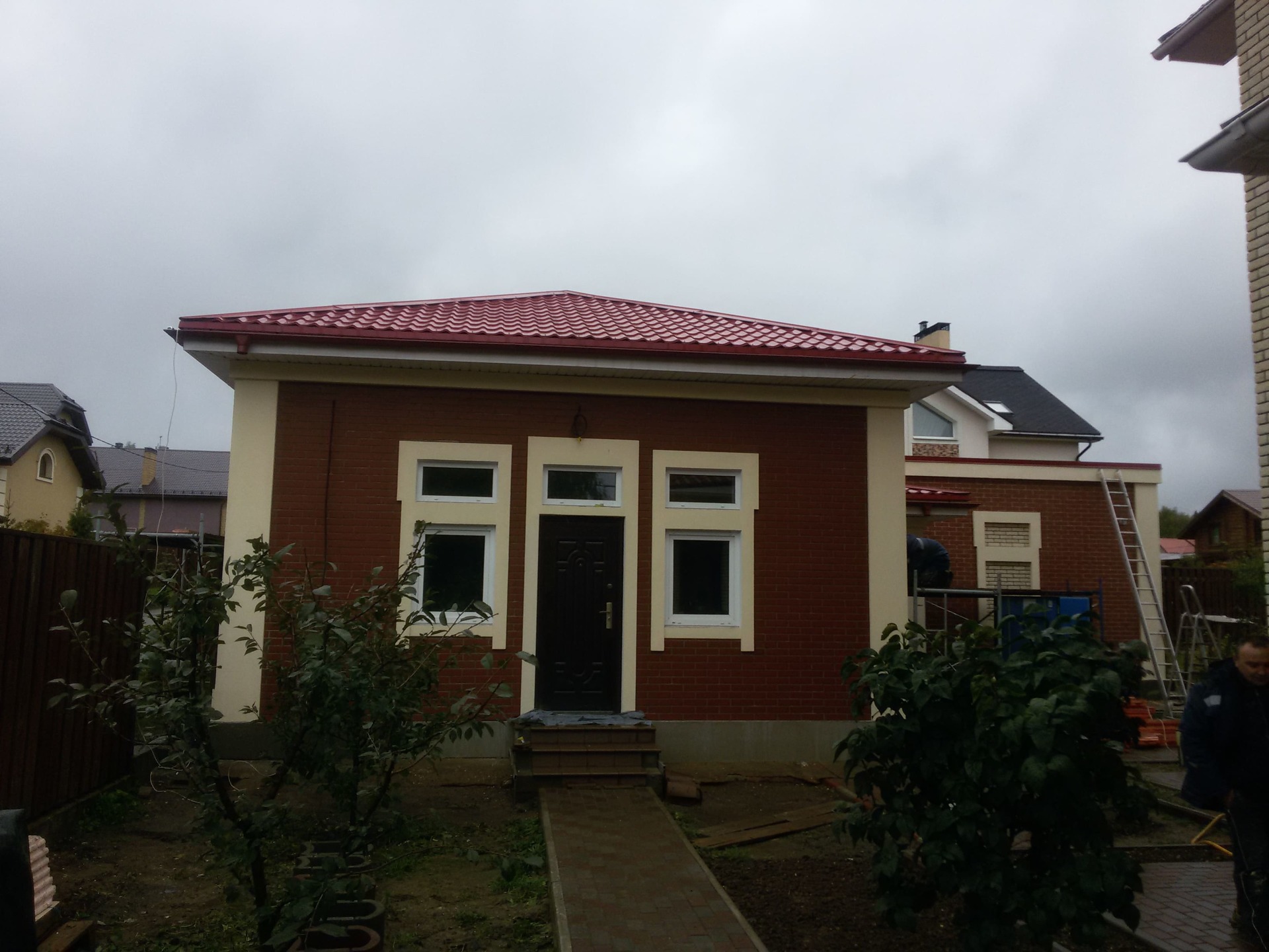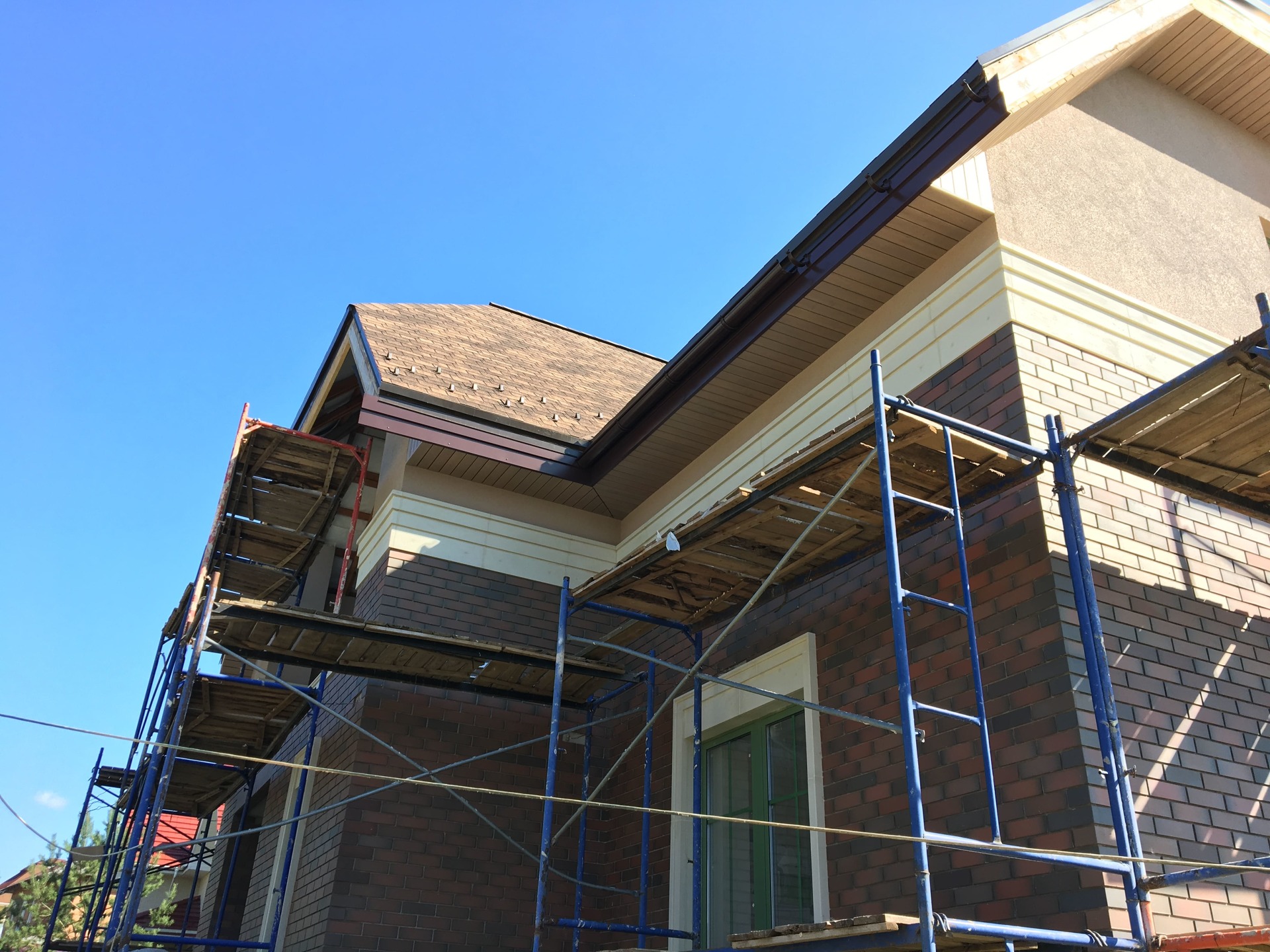 Также выполняются и сопутствующие работы (подшивка свесов, установка водосточной системы, отделка цоколя, демонтаж старого покрытия при необходимости и пр.) в требуемом заказчику объеме или "под ключ".