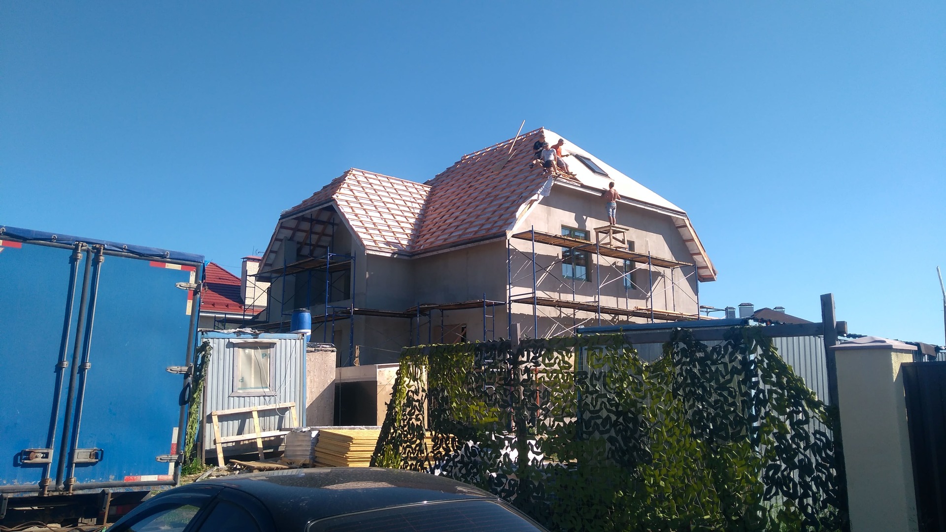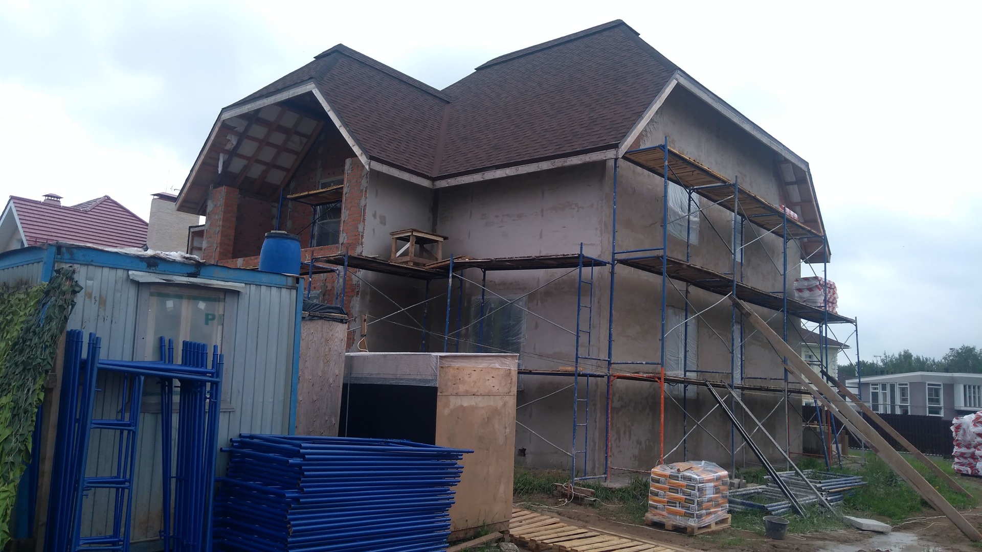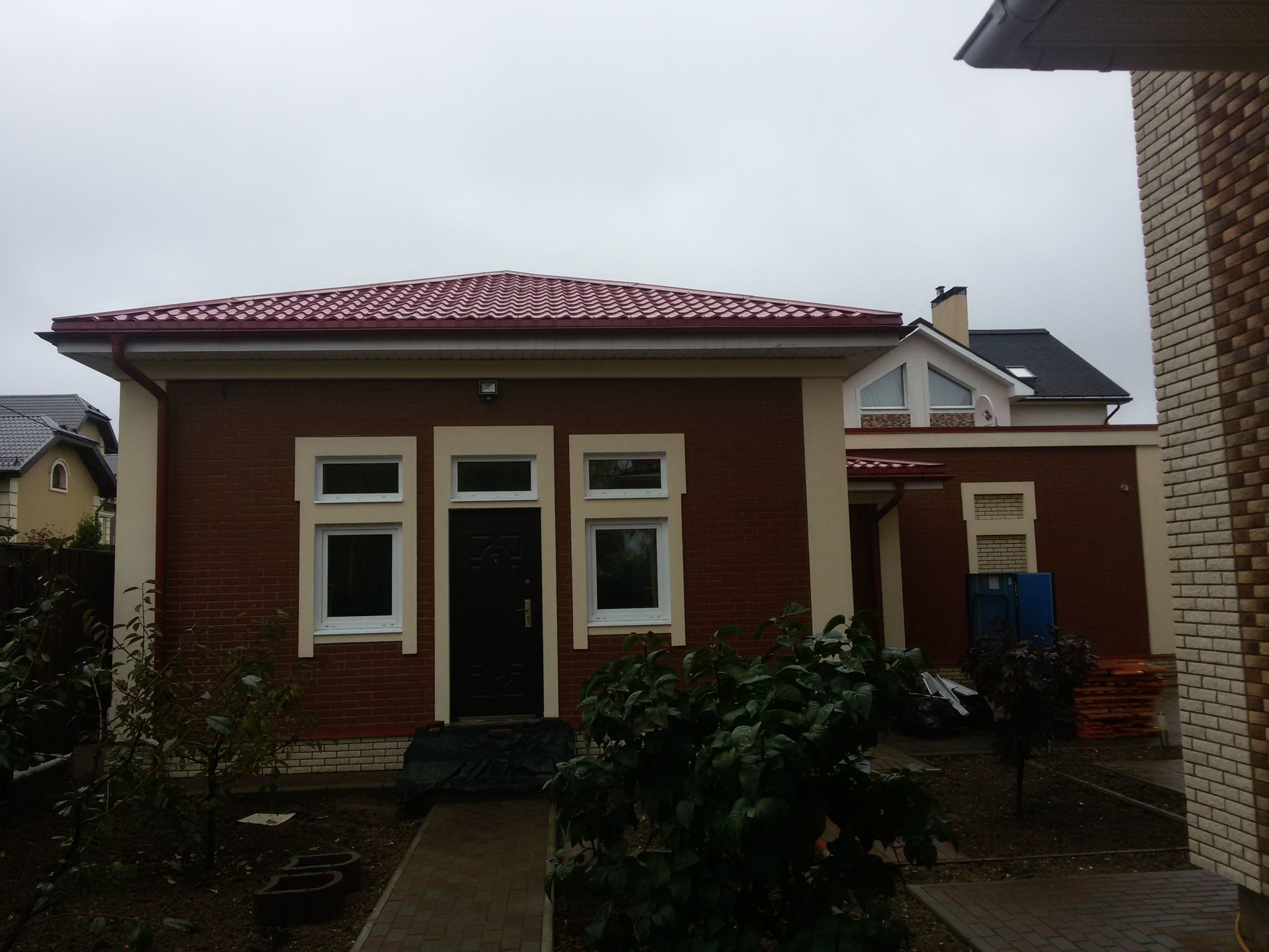 Также выполняются и сопутствующие работы (подшивка свесов, установка водосточной системы, отделка цоколя, демонтаж старого покрытия при необходимости и пр.) в требуемом заказчику объеме или "под ключ".