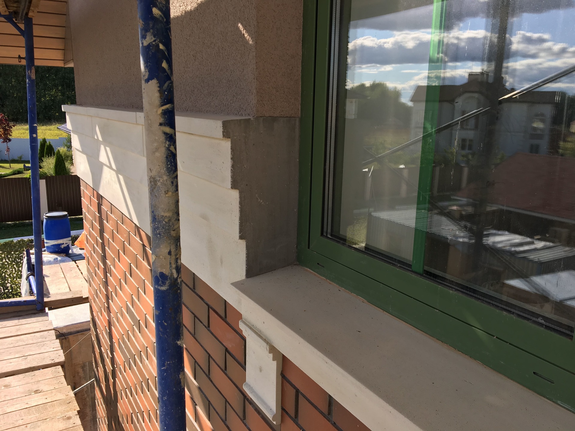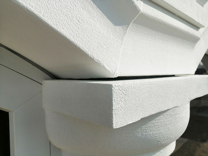 Утепление, подготовка и устройство фриза из финишного слоя, декоративной штукатуркой.