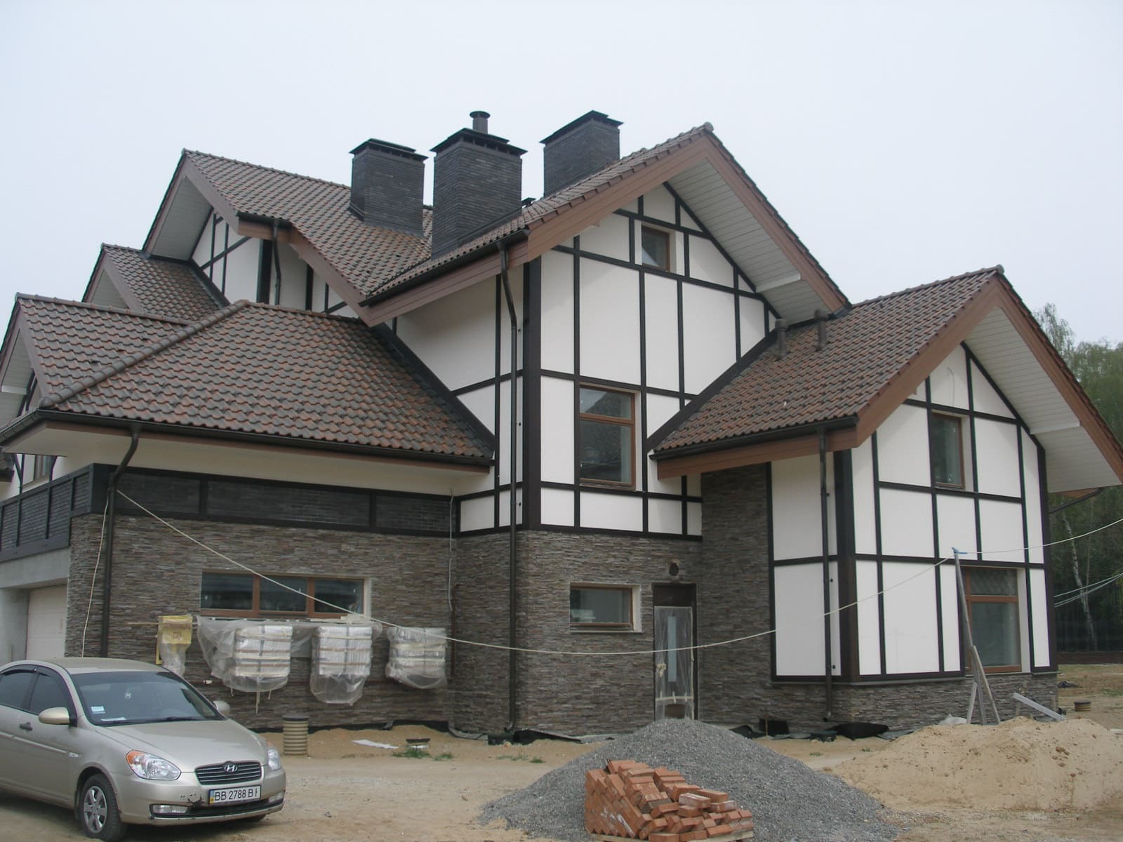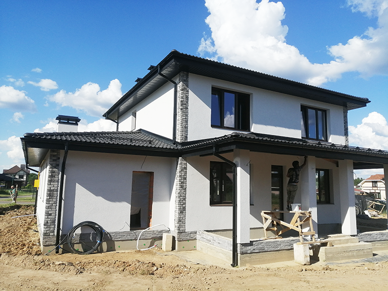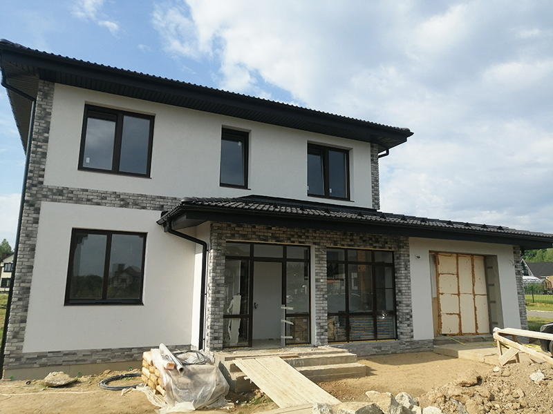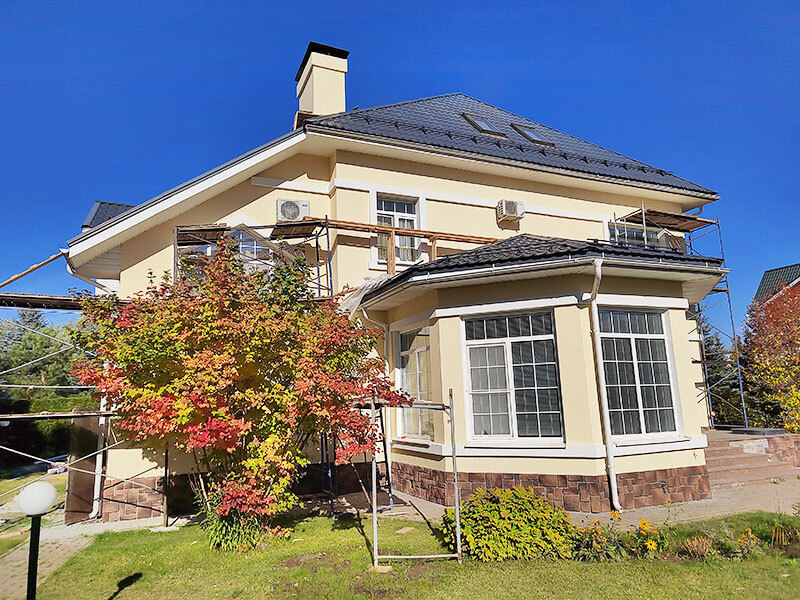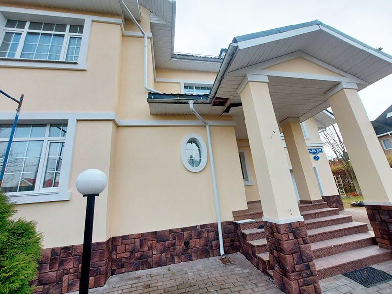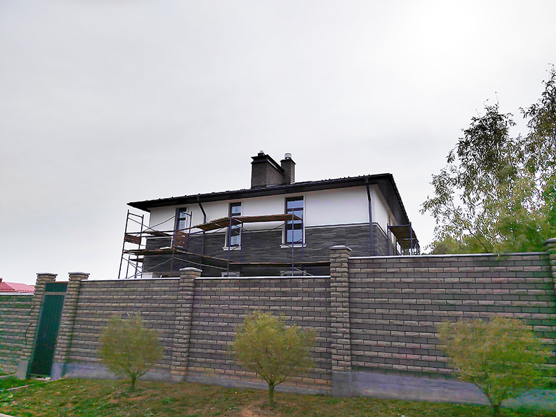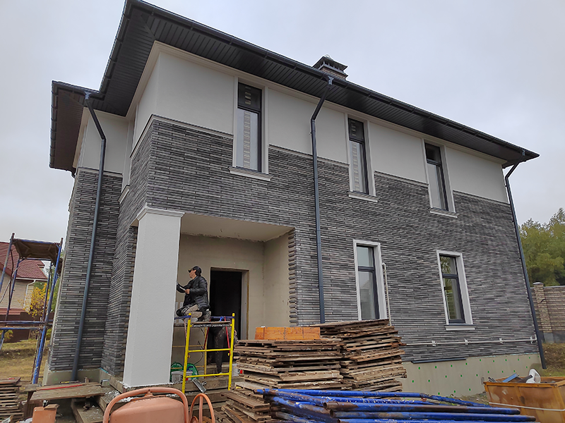 Мокрый фасад + облицовка камнем