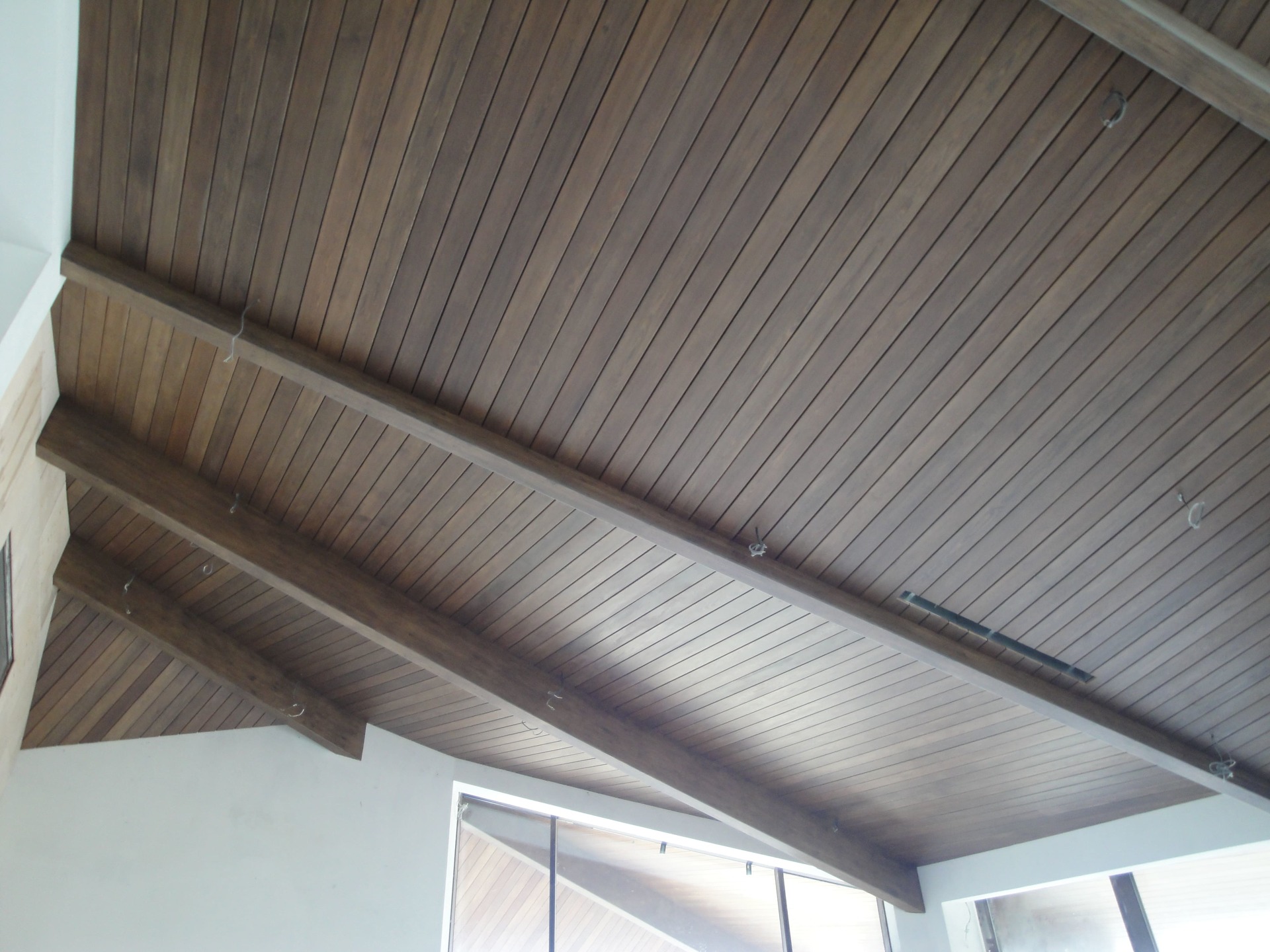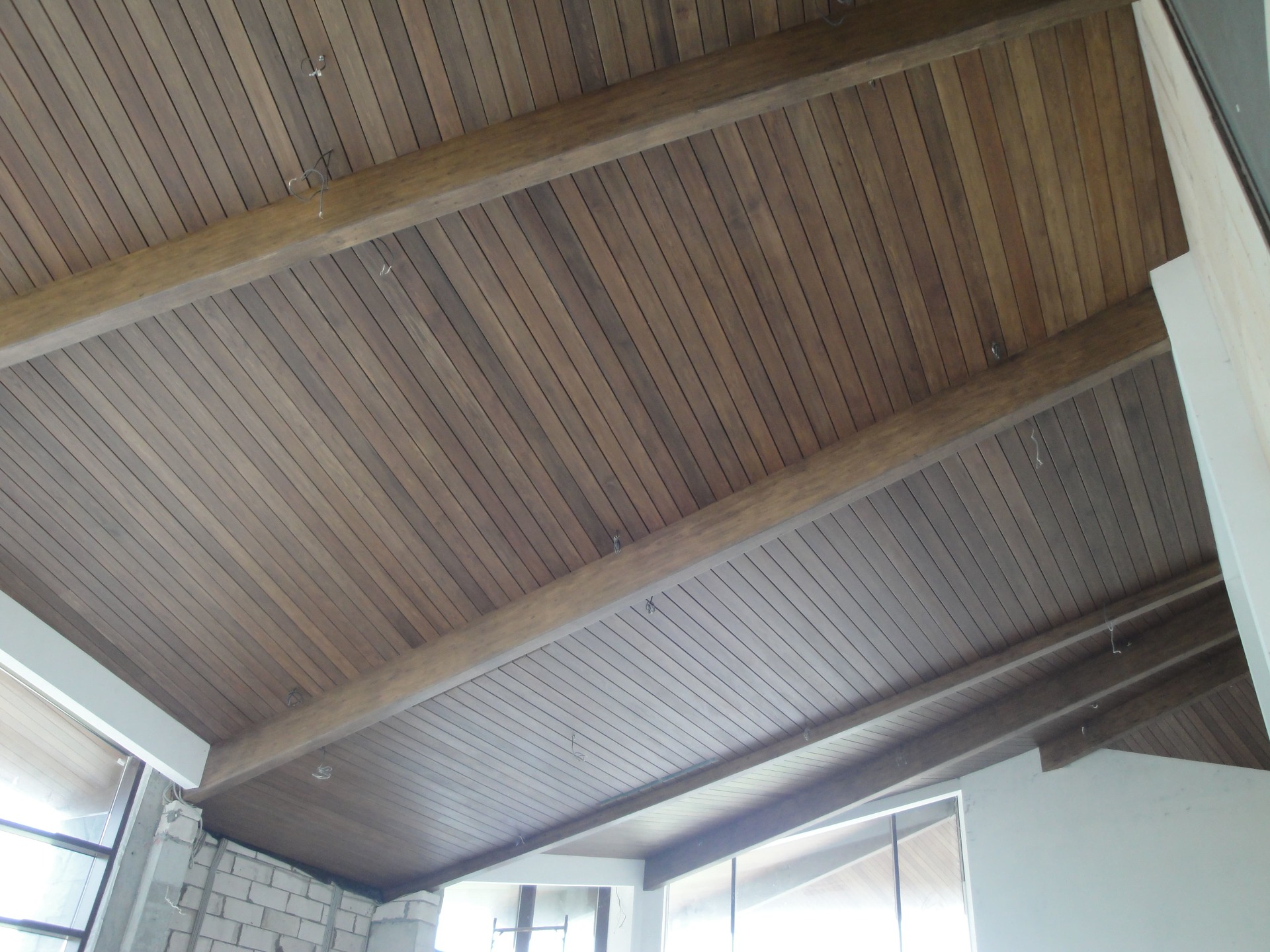 Демонтаж и монтаж, окраска деревянных балок из термоясеня